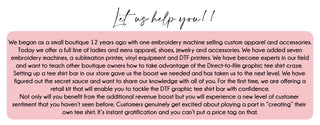 HOW TO SET UP THE BAR: We have figured out the best way to merchandise the transfers and blank tee shirts that maximize space and exposure. Pictures are included to give inspiration for your own store.